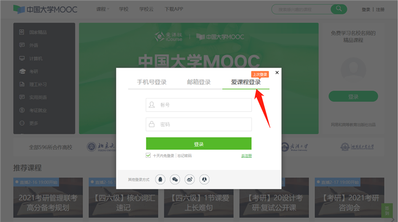 登錄網頁:https://www.icourse163.org/