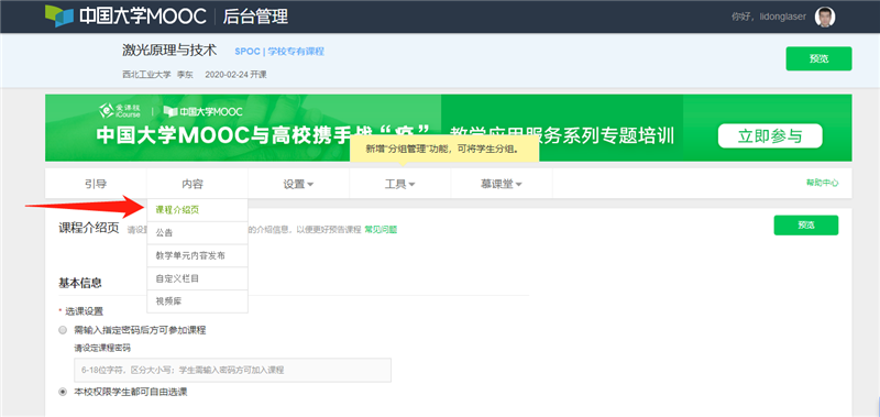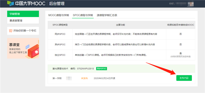 第五步:點擊相應課程“發布內容”