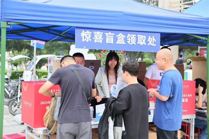 來到報到現場,人氣最高的點位的莫過于“驚喜盲盒抽領處”,新生們正滿懷期待地抽取屬于自己的驚喜。你拿到的是殲-20、運-20、直-20模型還是紀念郵票?