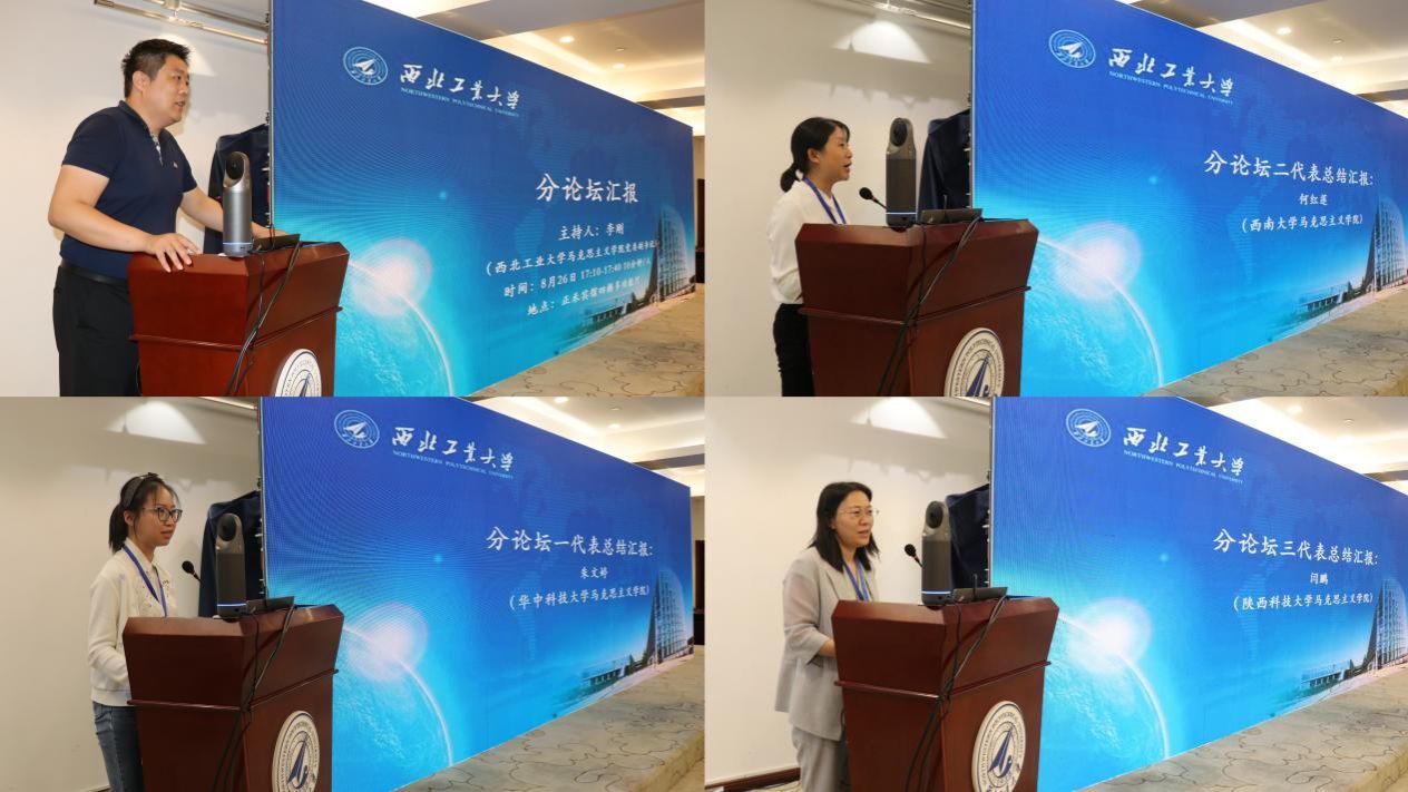 分論壇匯報環(huán)節(jié)由學(xué)校馬克思主義學(xué)院黨委副書記李剛主持。華中科技大學(xué)馬克思主義學(xué)院講師朱文婷、西南大學(xué)馬克思主義學(xué)院講師何紅連、陜西科技大學(xué)馬克思主義學(xué)院副教授閆鵬分別代表三個分論壇作總結(jié)匯報。