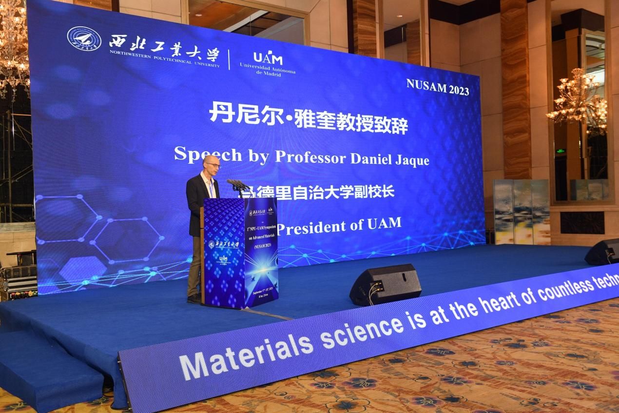 西北工業大學黨委副書記、紀委書記呂衛東,西班牙馬德里自治大學副校長丹尼爾·雅奎(Daniel Jaque)、副校長米格爾·曼索(Miguel Manso Silván)、副校長費利克斯·薩莫拉(Félix Zamora)等出席會議。中國科學院院士、西北工業大學學術委員會主任委員黃維擔任會議主席。新加坡國家科學院院士、新加坡國立大學教授劉小鋼主持大會開幕式。