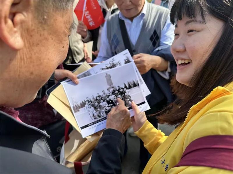 學院向1471班回贈了一份印有當年1471班全體同學照片、簽名、學院資深教師寄語以及學校部分老照片的塑封畫報,在場師生無不動容。