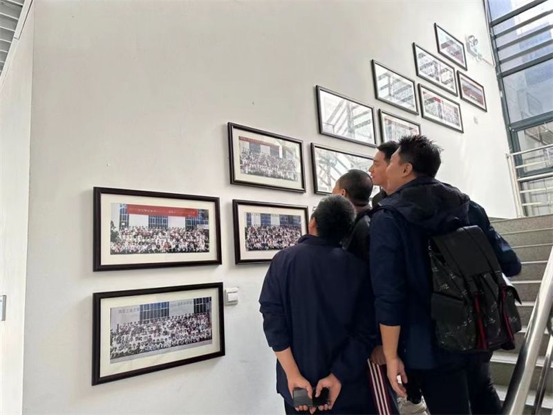 校友在學院精心布置的畢業合影前駐足良久,雖然過去很久,還是一眼就能找出當年那個意氣風發的他。