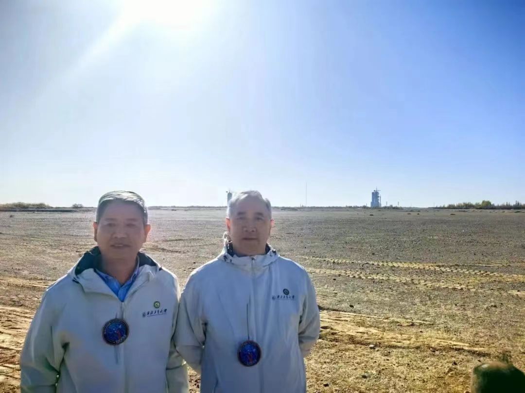 “空間生命科學與航天醫學團隊”的商澎老師、楊周岐老師在發射現場合影