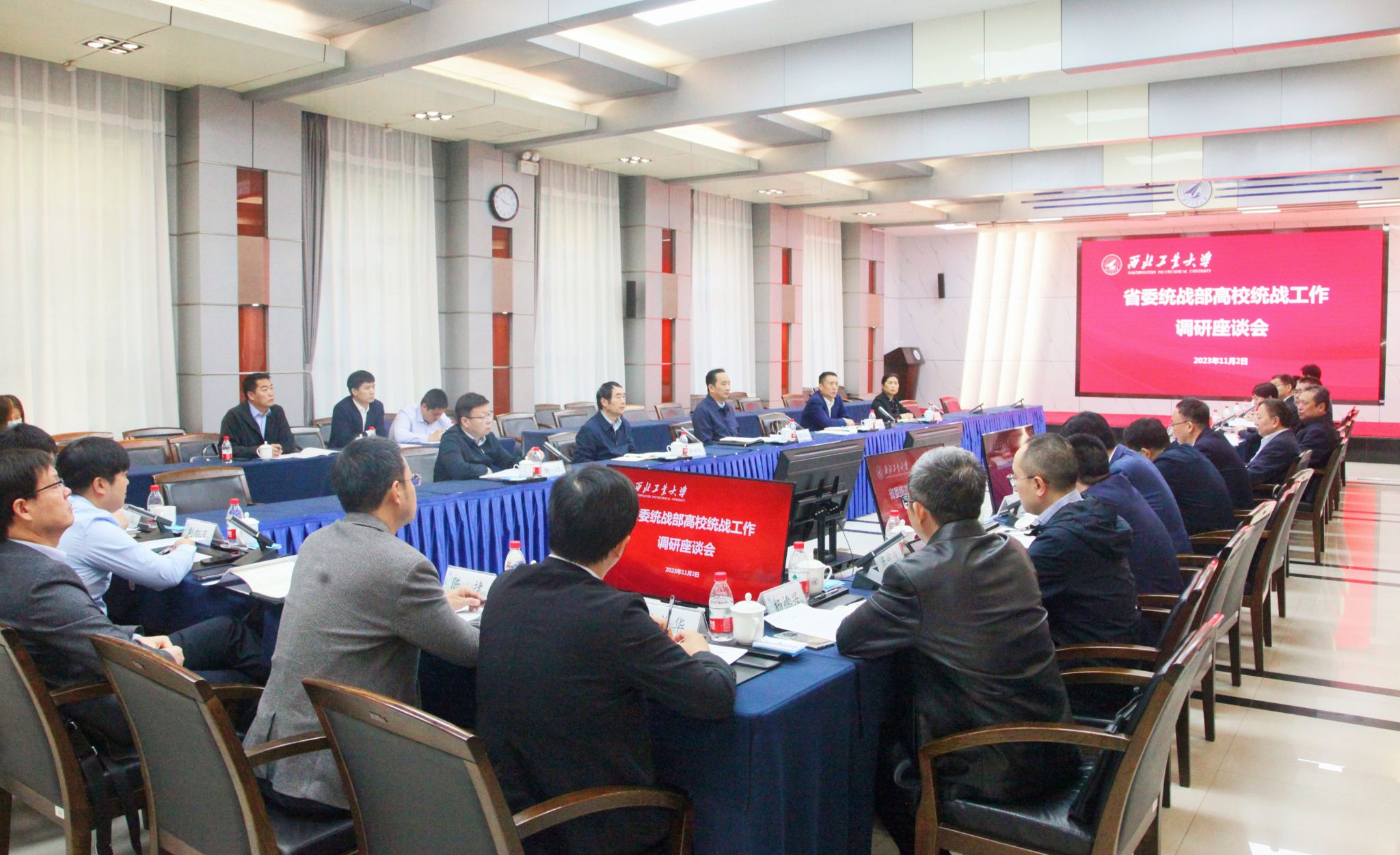 11月2日,陜西省委常委、省委統戰部部長李明遠到我校調研高校統戰工作,召開座談會聽取意見建議。省委統戰部副部長崔亦國、省委教育工委二級巡視員孫全學參加相關調研。我校黨委書記李言榮主持交流座談會,副校長張衛紅、副校長兼黨委統戰部部長侯成義參加相關活動。