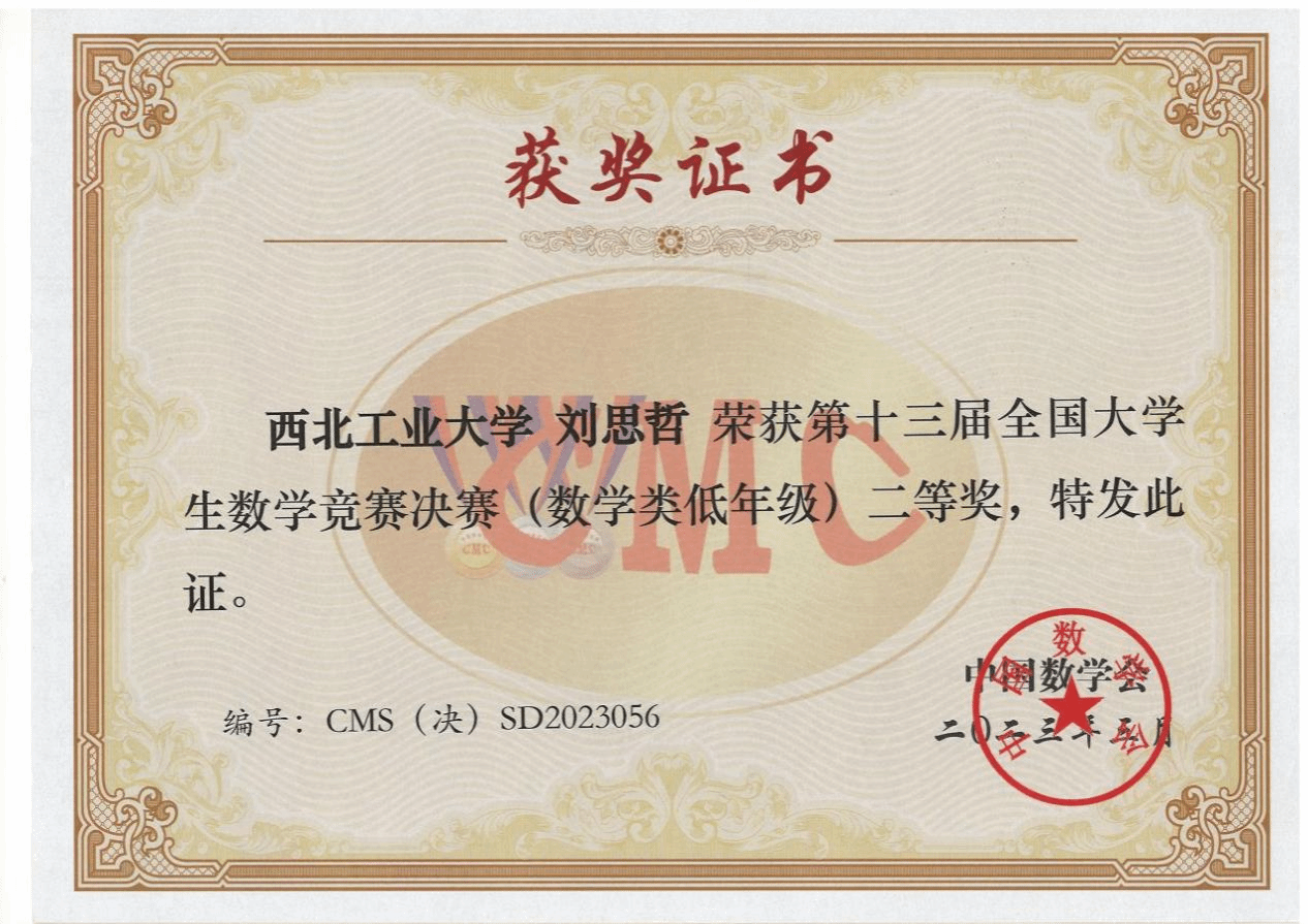 一直以來,劉思哲都對數學學科保持著濃厚的興趣。讓概念、定理、公式嚴絲合縫地“配合”,解決各式各樣的難題,劉思哲十分“癡迷”這一充滿挑戰的過程。在興趣的驅使下,劉思哲高考后毅然選擇了西工大數學與應用數學專業。隨著本科對于數學學習的不斷深入,他也在鉆研中逐步總結出了一套自己的學習方法。