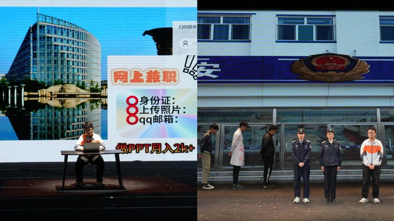 動力與能源學(xué)院學(xué)生吳天兵參演《指尖謎局》感受:“我是劇組的執(zhí)行導(dǎo)演,看到所有同學(xué)20多天的付出和努力化為成果,最終將《指尖謎局》成功呈現(xiàn)上舞臺,內(nèi)心是替大家驕傲的;劇目聚焦網(wǎng)絡(luò)時代一個普通家庭發(fā)生的AI詐騙事件,通過參演其中,更加增強了我的反詐意識,認(rèn)識到了網(wǎng)絡(luò)安全對于維護人民群眾利益、維護國家安全的重要性。”