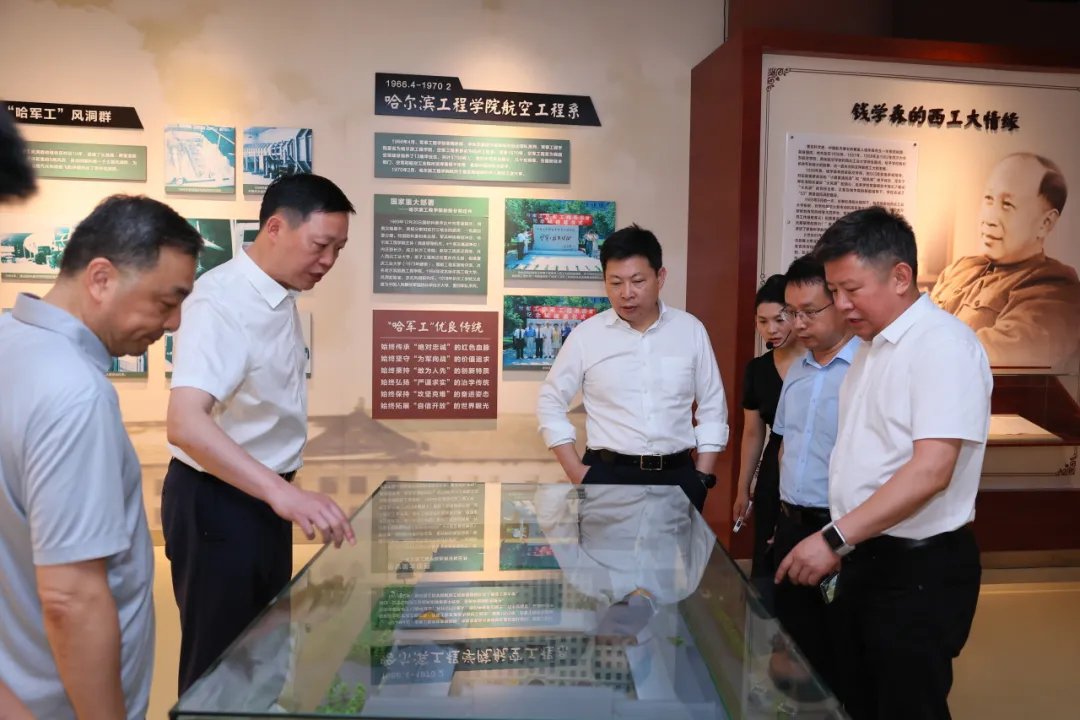 畢業典禮后,在張開富副校長的陪同下,余承東校友先后參觀了翱翔實驗室、校史館等,學習了解學校的發展歷程和發展成效,并與在場師生校友等親切合影。