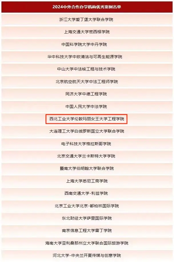 2024年6月21日,西北工業大學倫敦瑪麗女王大學工程學院2024屆本科生畢業典禮暨英方學位授予儀式在長安校區隆重舉行,這是學院建成以來迎來的第四屆畢業生,四屆畢業生整體深造率均超80%,出國(境)深造率超40%,其中共有99人赴國內外頂尖高校深造,包括劍橋大學、牛津大學17人,帝國理工學院45人,清華大學、北京大學27人;學院兩次蟬聯教育部中外合作辦學機構聯席會主席單位,連續三次榮獲陜西省中外合作辦學優秀機構。