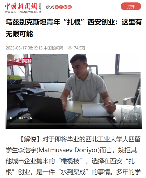 2023年5月中國-中亞峰會召開之際,來自中亞國家的留學生受到了新華社、中新社、鳳凰衛視、國際在線、陜西日報、西安日報、西安廣播電視臺等媒體采訪。他們在學校刻苦求學,在西安生活浸潤,在中國奮斗成長,不斷取得收獲。從了解中國到讀懂中國,再到成為“中國故事”的一部分。他們用心用情講述他們的“中國故事”,喜迎中國-中亞峰會的召開。