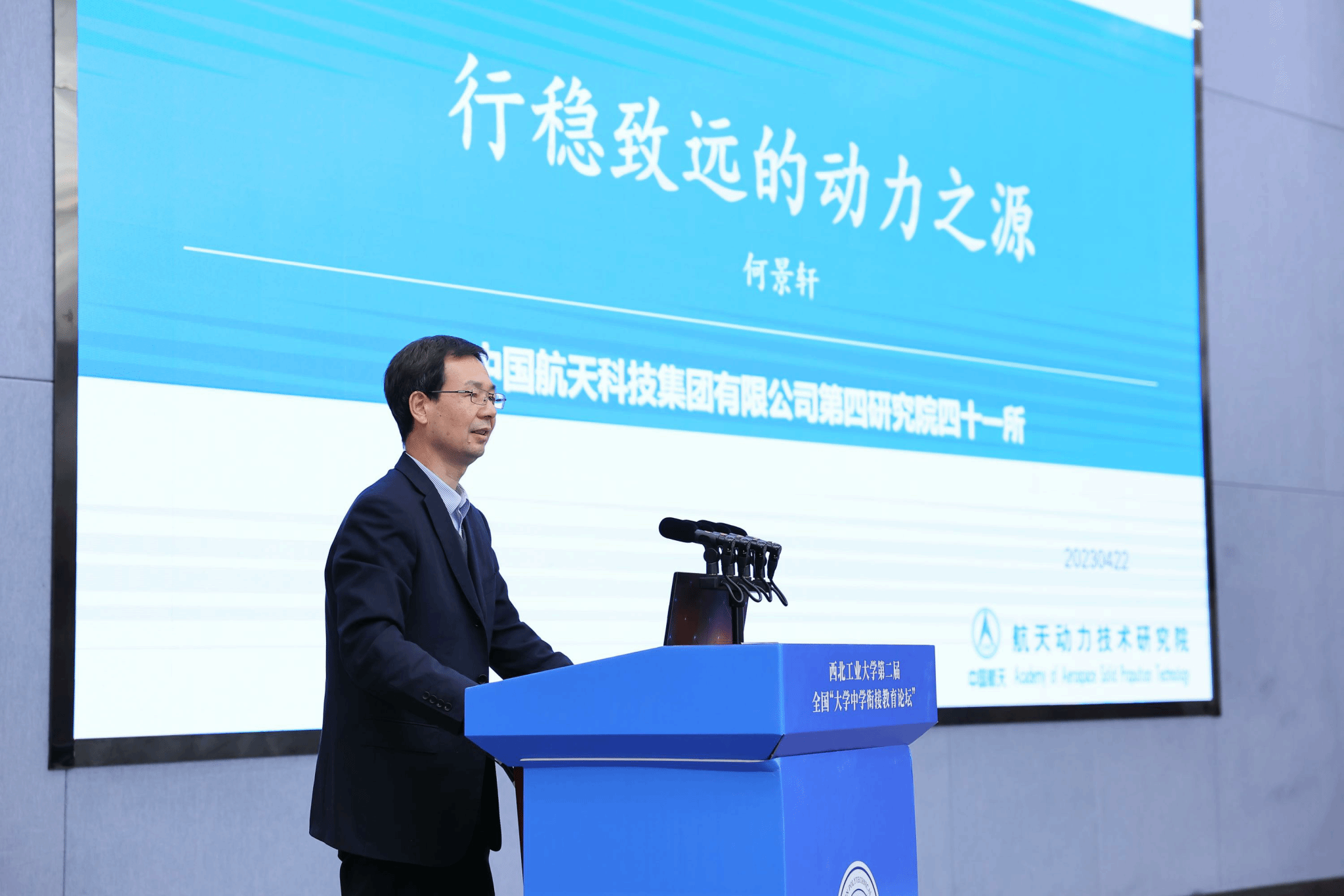 何景軒總師以《行穩致遠的動力之源》為題向參會嘉賓介紹了個人成長經歷以及我國從航天大國向航天強國跨越的過程中,固體動力領域行穩致遠的兩個主要動力之源——一是固體動力技術的持續創新發展,二是母校西工大對相關學科人才的體系化、高層次培養。他指出,西工大有實力能源源不斷地培養造就大批優秀人才,為我國的航天事業作出更大的貢獻。