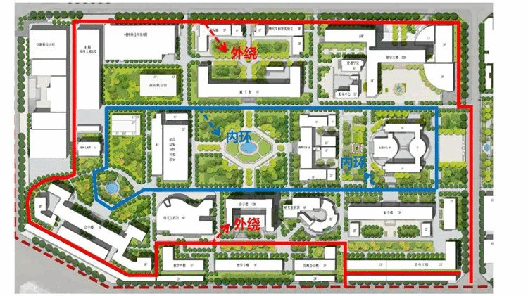 學校辦公室牽頭保衛處、發規處、信息化處等單位圍繞“內環外繞”工程,對教學區現有交通布局進行調整,采取分時管理、分區域管理、分時段管理的“三分”管理策略,施行“人員引導、設備引導、技術引導”相結合的車輛管理機制,以改善校園道路車輛擁堵無序的問題。