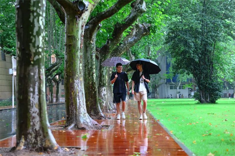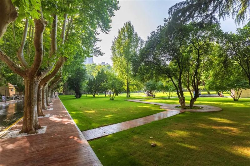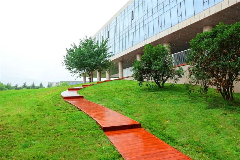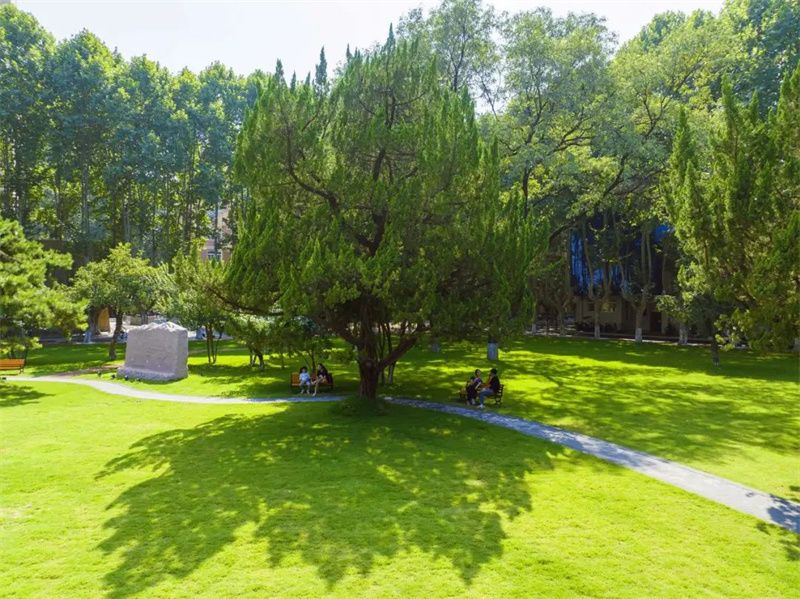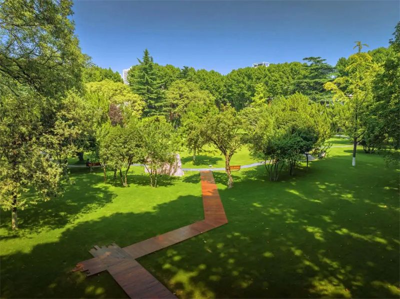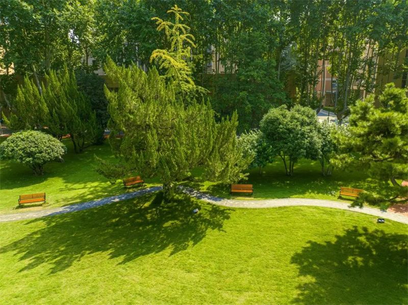 現(xiàn)如今,茵茵綠草上鋪設(shè)著木制棧道,新添的座椅提供了更為舒適的休閑空間,學(xué)習(xí)科研之余,漫步其間,在滿眼蒼翠中找尋靈感,在鳥語(yǔ)花香中暢聊未來(lái)。