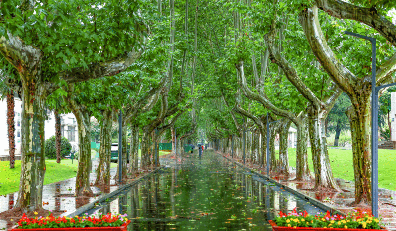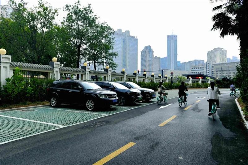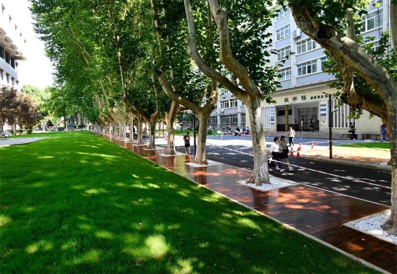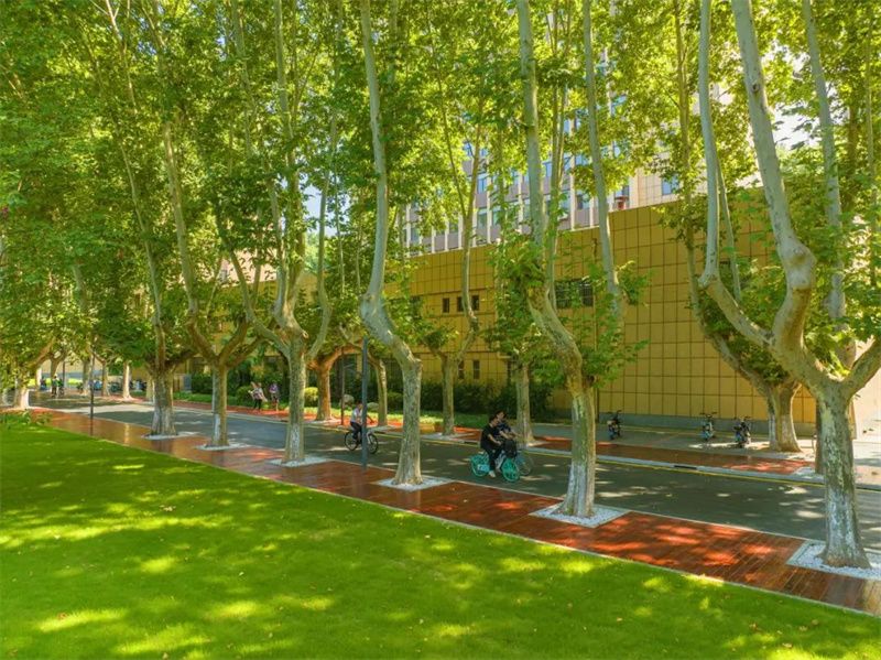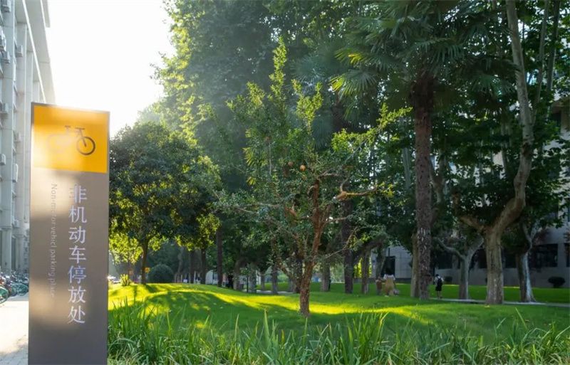 梧桐大道兩側(cè)還專門規(guī)劃有非機(jī)動(dòng)車停放處,方便師生的同時(shí),校園也更整潔。